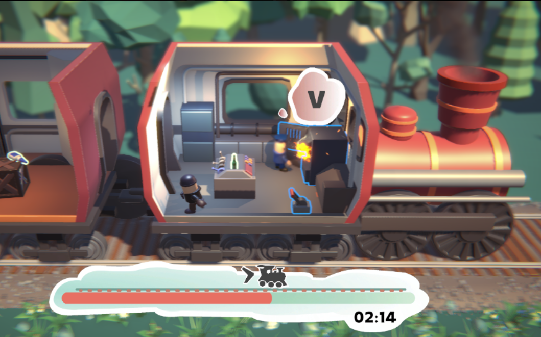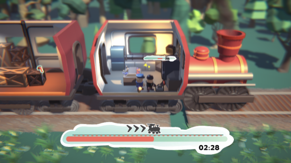 Postavy se předhání pomocí jednoduchých puzzlů na základě mačkání kláves a k vzájemné sabotáži jim napomáhají akční předměty ve vagónech jako kleště, pivo nebo bomba.